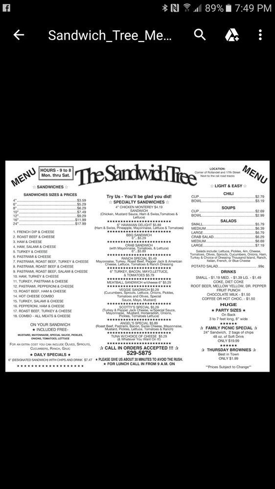 The Sandwich Tree Menu (2025 Update)